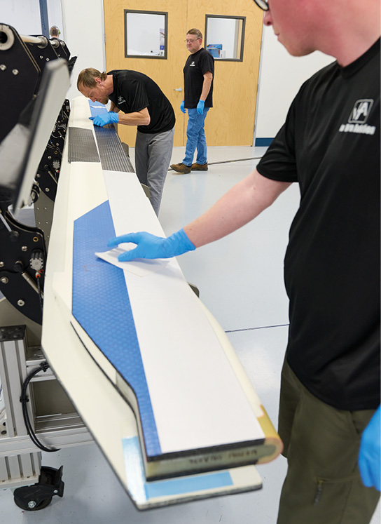 Above: Van Horn Aviation design engineer Chris Gatley brought with him 13 years of experience when he joined the company in 2019, including work on main-rotor blades for the AH-64D/E Apache, foreground. All photos by Mark Bennett What goes into making a rotor blade? A lot more than you might think. Rotor blades are designed for performance. But they are also designed to be manufactured, and how they are manufactured is probably more involved than you think. Rotorcraft blades are some of the most complex purely mechanical items on a helicopter. They might appear as a seamless piece, but their construction comprises myriad components, shaped and joined, inspected and tested. The end result must be able to endure a range of environments and abuse, survive being flung around a hub hundreds of times per minute, twisted up, then down at that same rate, while supporting its share of an aircraft ranging from less than 900 to over 120,000 lb. What is possibly the only extant set of Sikorsky S-51 main-rotor blades not mounted on a helicopter currently rests on a hangar wall at Vertical Aviation Technologies in Sanford, Florida. The blades were manufactured in 1952. Pencils to PCs, Spruce to Carbon Fiber Long before you start hammering together a rotor blade, much design work is required across manifold disciplines. At the dawn of rotary-wing flight, it made sense that existing fixed-wing airfoils, developed with pencils and slide rules, guided the design of helicopter rotor blades. Likewise, wood-and-fabric construction was the logical choice. Those airfoil designs and construction techniques were found wanting, however. For instance, air pressure changes in hollow, fabric-covered trailing edges would change performance during flight, and moisture from rain, or even just humidity, could alter the weight of blades disproportionately on a single helicopter. Moreover, the inherent difficulty of making every blade for a specific aircraft model the same size, shape, and weight was so severe that blades had to be installed and, when needed, replaced in complete sets. Soon, legacy designs yielded to the results of intensive (and ongoing) research into not just the shape of airfoils—the 2D cross section—but also a full 3D optimization of the blade from root to tip, calculated with computers and verified in wind tunnels. Construction materials and manufacturing processes progressed similarly. (See “Airfoil Design,” at bottom of article, for more on airfoils.) The result? The designs, materials, and manufacturing processes for helicopter rotor blades, main and tail, followed the same path forged by makers of airplanes: better-performing, longer-lasting, more-consistent wings. As It Ever Was Vertical Aviation Technologies S-52L Main Rotor Blade Airfoil: NACA 0014 Length: 15′7″ (4.75 m) Weight: 40 lb. (18.1 kg) Number of Components: ≈ 138 Manufacturing time: 79 hours over 18 days Vertical Aviation Technologies has been building kit versions of the Sikorsky S-52 helicopter, including the main-rotor blades, for 30 years in their Sanford, Florida, facility. The S-52 blade assembly and balancing room at Vertical Aviation Technologies. The aircraft sported the first all-metal blades on an American helicopter, a design later revised for more consistent manufacturing, better performance, and longer life. The blades now comprise about 138 components, most of them manufactured on-site by Vertical Aviation, and all of them assembled, painted, and balanced per the company’s FAA-approved process specifications. Those components include an extruded aluminum spar, which also functions as the leading edge; trailing-edge pockets of aluminum sheet (15 per blade in three different configurations); phenolic spacers; custom blade-balancing hardware; and a steel cuff with a unique threaded collar for attaching the blade to the rotor head. There have been other improvements over the decades, mostly in adhesives and paint, but the basic design remains safe and effective. Beneath the end cap on each blade is this blade balance weight system. The root end of two S-52L main-rotor blades, the lower one with just the pocket attached, the upper one complete with its unique threaded cuff nut for attaching the blade to the rotor head. Trailing-edge pockets awaiting incorporation into blades. Everything Old Is New Again Van Horn Aviation Bell 206L Main Rotor Blade Airfoil: NASA RC(4)-10 Length: 17′6″ (5.28 m) Weight: 96.9 lb. (43.95 kg) Number of Components: 316 Manufacturing Time: 240 hours over 40 days When Van Horn Aviation decided to design replacement main-rotor blades for Bell 206 helicopters, they opted for a NASA airfoil and modern materials. The result is performance that matches or surpasses that of the factory blade, with a service life four times the original’s. Technicians at Van Horn Aviation, on the left, piece together plies of carbon fiber and other materials for Bell 206 tail-rotor blades, and on the right, lay up a main-rotor blade for the same aircraft model. The Van Horn Aviation blade is seriously more complex than its sleek exterior might suggest. Beneath the paint and behind that full-length abrasion strip are layers of precisely laid carbon-fiber fabric of varying formulations, dimensions, and locations. And beneath the carbon fiber is a core of structural foam cut by computer-controlled machinery. Designing a composite blade to replace an aluminum one also requires engineering and manufacturing the components used to attach the composites to the metal root, creating and bonding the abrasion strip, incorporating track-and-balance adjustment features, etc.—every item and process different from the original. Even after the composites are laid up, the titanium machined and coated, and all the components bonded and cured in an autoclave, ahead are still final machining, painting, and quality control. No wonder it takes so long (nearly seven weeks, start to finish) to make a blade! Titanium root f